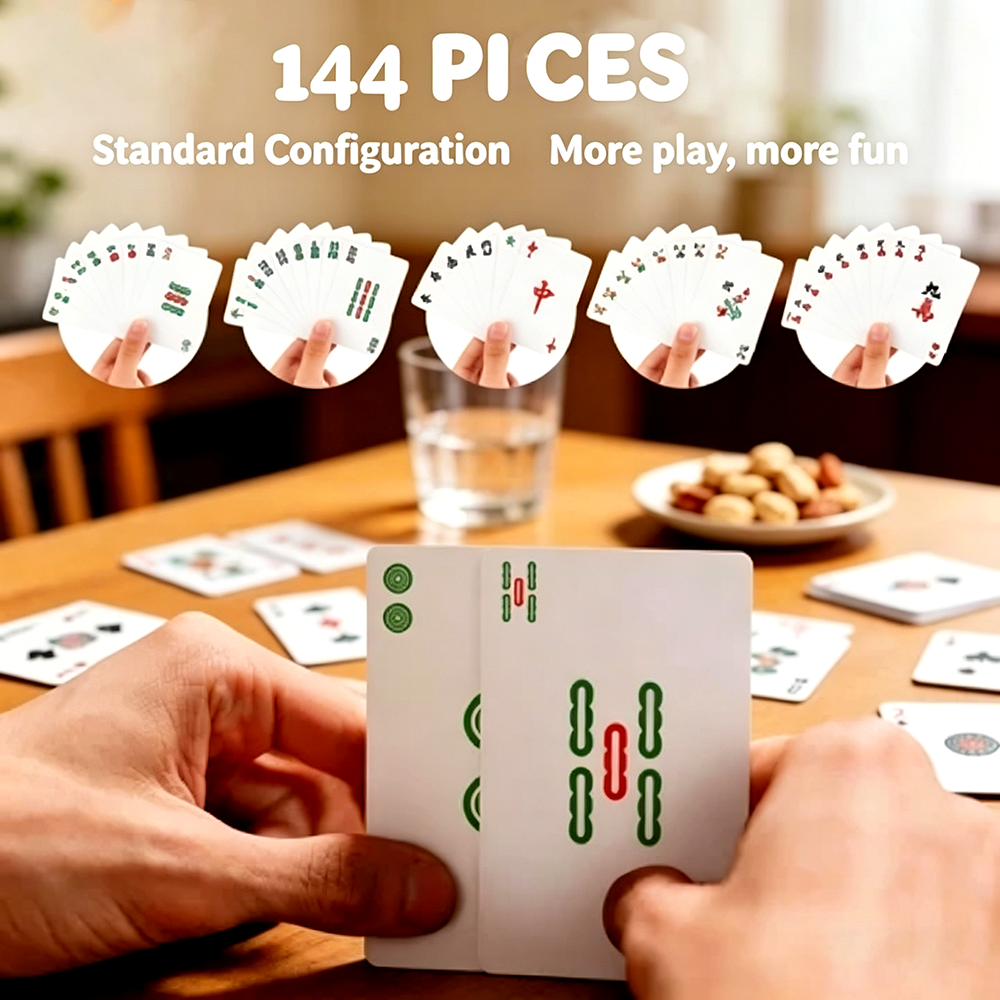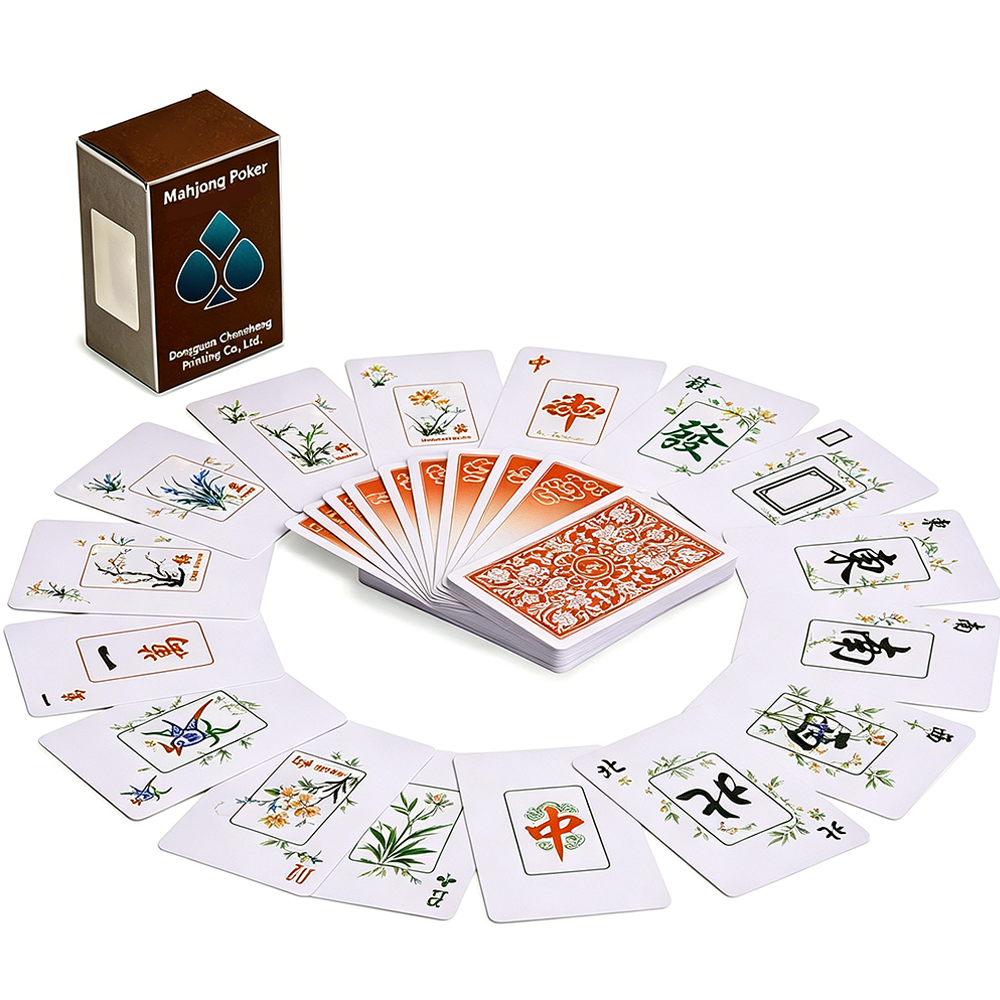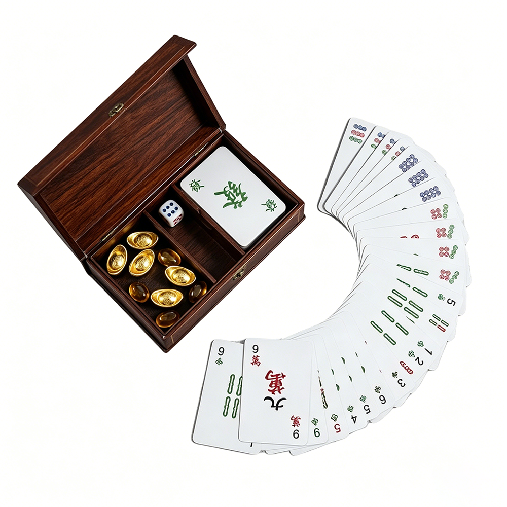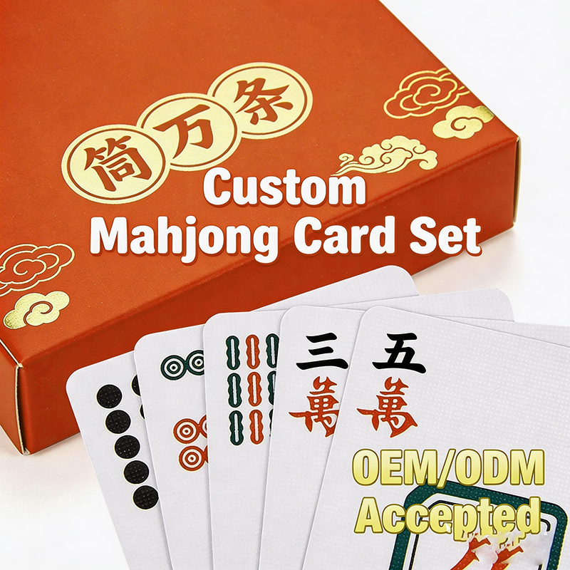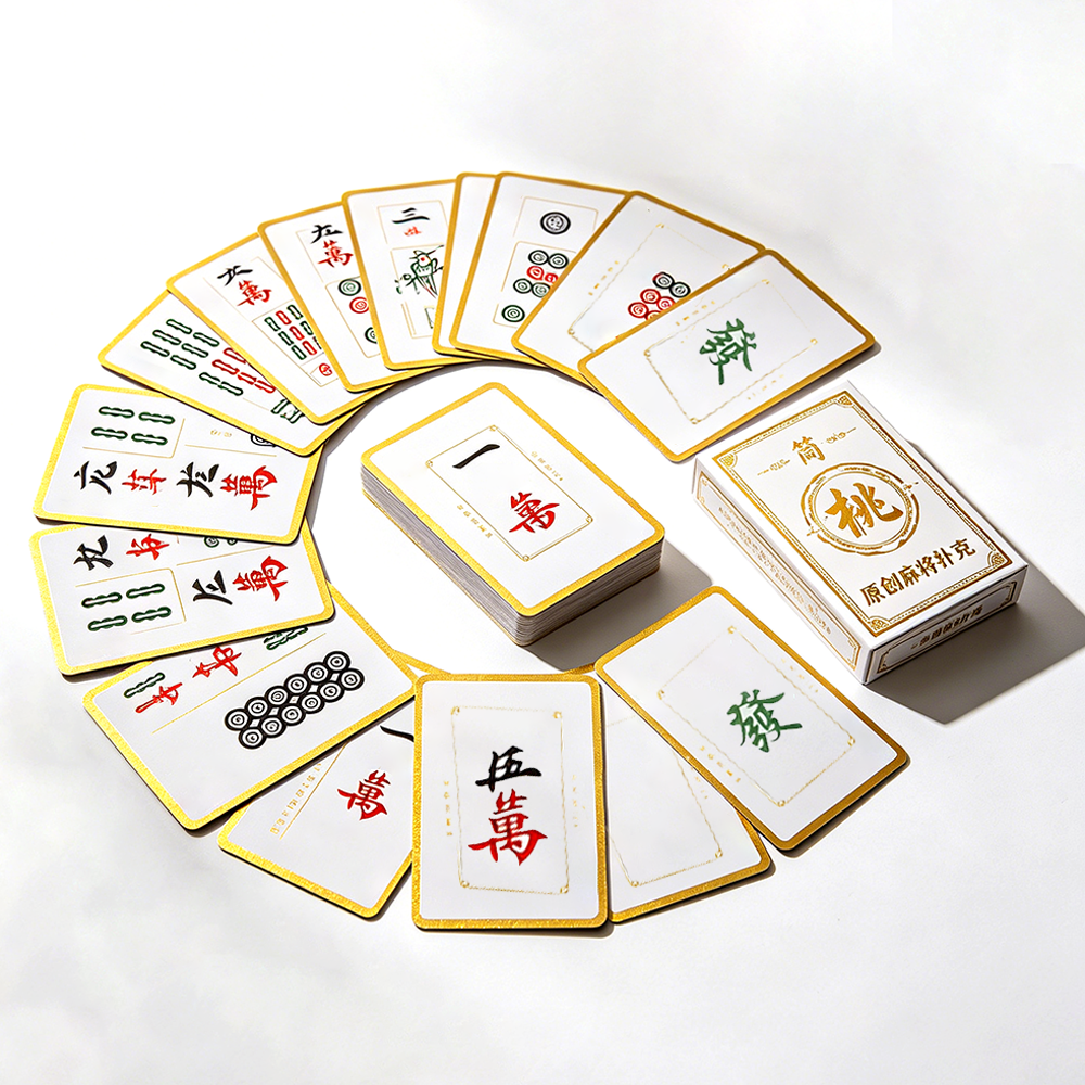Чтобы соответствовать актуальной тенденции и удовлетворить рыночные потребности, мы представляем новую серию карт «Маджонг-Покер» 2 в 1, которая сочетает классические символы маджонга с дизайном стандартных покерных карт. Одной колодой можно играть как в маджонг, так и в обычный покер. Карты отличаются превосходной портативностью, высококачественными материалами и возможностями индивидуальной кастомизации, благодаря чему быстро стали востребованным продуктом у международных закупщиков, розничных продавцов и в подарочных каналах сбыта.